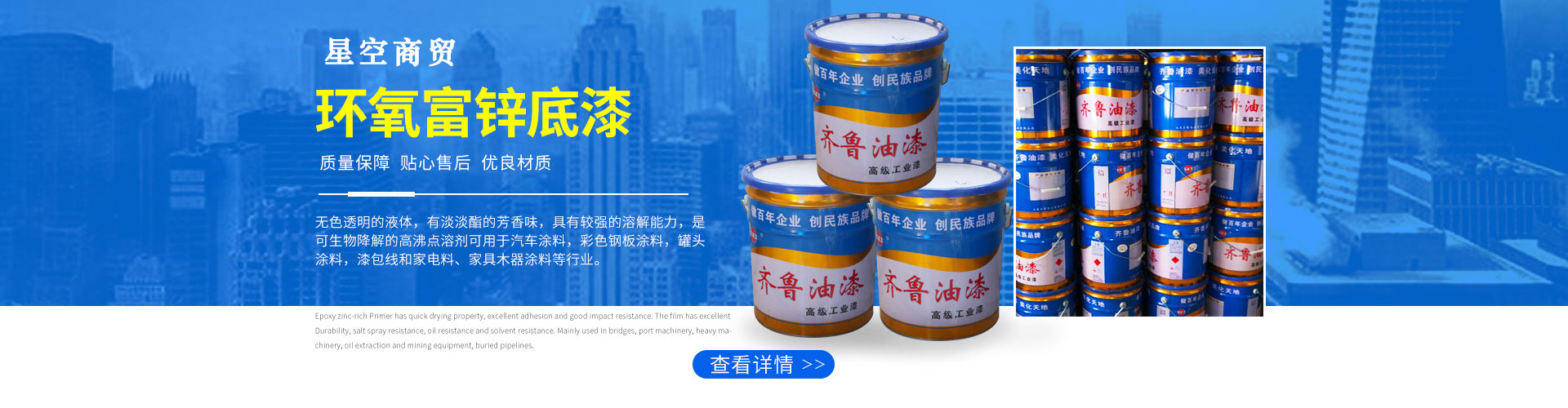 1先進(jìn)設(shè)備 保證品質(zhì)Advanced equipment to ensure quality聊城星空商貿(mào)有限公司長(zhǎng)年專(zhuān)業(yè)從事經(jīng)營(yíng)銷(xiāo)售各種環(huán)氧富鋅底漆 環(huán)氧地坪漆 聚氨酯面漆 鋼結(jié)構(gòu)油漆 鐵紅防銹底漆 防銹漆 橡膠漆 丙烯酸面漆 齊魯油漆。并具有一整套完善的運(yùn)營(yíng)模式。2多元化定制加工省時(shí)省力customized processing saves time and effort公司的產(chǎn)品在消費(fèi)者當(dāng)中享有較高的地位,公司與多家零售商和代理商建立了長(zhǎng)期穩(wěn)定的合作關(guān)系。產(chǎn)品品種齊全、價(jià)格合理。公司實(shí)力雄厚,重信用、守合同、保證產(chǎn)品質(zhì)量,以多品種經(jīng)營(yíng)特色和薄利多銷(xiāo)的原則,贏(yíng)得了廣大客戶(hù)的信任。