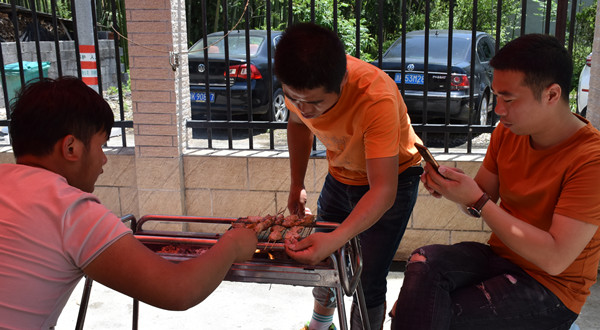 活動中,每個員工都自己動手,有的負責生火炒菜、有的負責包水餃、有的負責后勤服務(wù),制作部的男生們負責燒烤,女生媽媽們負責照顧孩子做游戲,大家分工合作、默契配合,親手烹制了一頓豐盛的佳肴。