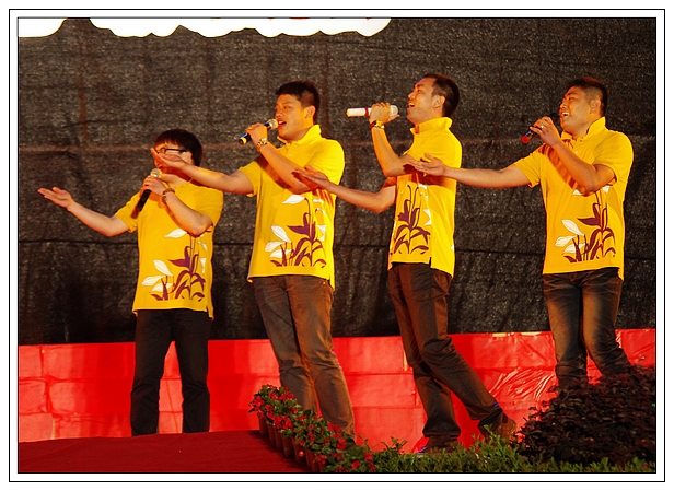 晚會(huì)在大合唱《咱們工人有力量》歌聲中拉開(kāi)帷幕,麗汽集團(tuán)各二級(jí)單位組織的12支演唱隊(duì)伍依次上臺(tái),分別參加大合唱組和小組唱組的比賽??炜凸具x送的《天路》、南明賓館選送的《打起手鼓唱起歌》分別獲得大合唱組和小組唱組的一等獎(jiǎng)客運(yùn)西站選送的《團(tuán)結(jié)就是力量》、集團(tuán)公司機(jī)關(guān)選送的《我和我的祖國(guó)》分別獲得大合唱組和小組唱組的二等獎(jiǎng)。