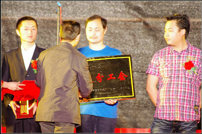 集團(tuán)公司總經(jīng)理虞大貴為演唱會(huì)二等獎(jiǎng)單位頒獎(jiǎng)