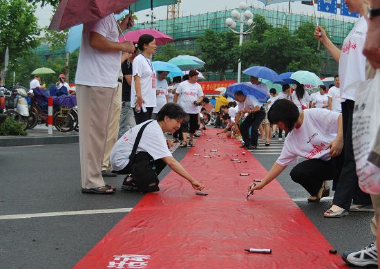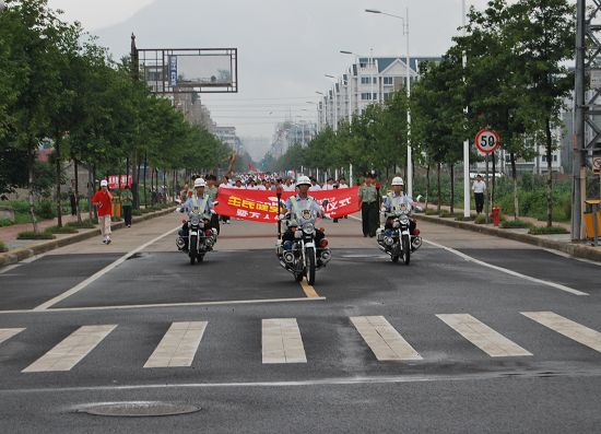 健步走隊(duì)伍在麗水市委書記陳榮高的帶領(lǐng)下,從濱水公園出發(fā),沿著花園路-囿山路-宇雷路-江濱路返回濱水公園,盡管活動(dòng)開始后不久,天空就下起了小雨,但是這絲毫沒能阻擋大家的熱情,隊(duì)伍冒雨堅(jiān)持走完了全程。到達(dá)終點(diǎn)后,大家在印有麗水市“全民健身日”暨萬人健步走活動(dòng)的橫幅上簽字。
