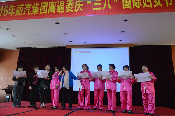 為慶祝第106個國際婦女節(jié),展示離退休女職工的風采,今天上午,麗汽集團離退委在八一賓館舉行慶“三八”國際婦女節(jié)才藝展示活動,260余名離退休女職工表演了扇子舞、排舞、詩朗誦、太極表演、獨唱、合唱、腰鼓、三句半等節(jié)目,既展示了離退休職工的精神風貌,也展示了他們豐富多彩的退休生活。全體人員起立合唱的一曲《革命人永遠是年輕》將活動推向了高潮。