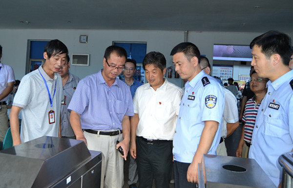 7月13日下午,市委常委、區(qū)委書記葛學(xué)斌、蓮都區(qū)公安局局長葉建利等領(lǐng)導(dǎo)在集團(tuán)公司董事長葉茂的陪同下到客運(yùn)東站調(diào)研護(hù)航G20安保工作情況。一行人經(jīng)過人物分離的安檢通道進(jìn)入長途班車候車廳,在聽取東站經(jīng)理江小華介紹下親自體驗(yàn)了客運(yùn)東站新安裝的實(shí)名檢票系統(tǒng)。葛書記對客運(yùn)東站的安保工作表示滿意,強(qiáng)調(diào)護(hù)航G20工作已經(jīng)進(jìn)入臨戰(zhàn)階段,作為車站要切實(shí)加強(qiáng)出入安全檢查,扎實(shí)做好各項(xiàng)安保工作,堅(jiān)決打贏“護(hù)航G20,平安奪金鼎”這場硬戰(zhàn)爭。