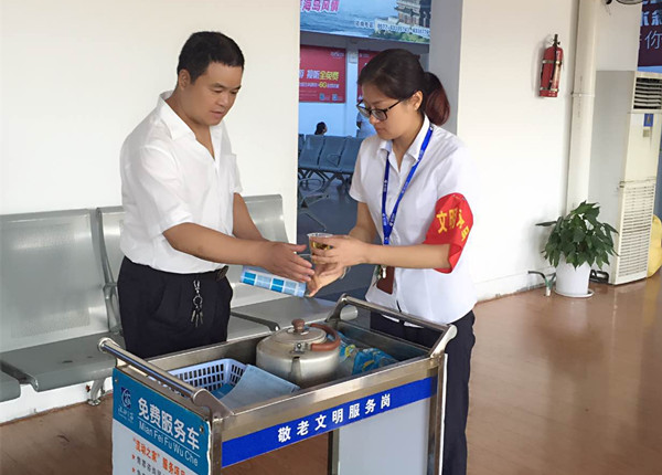 東站作為文明城市創(chuàng)建的窗口,人性化的服務(wù)給酷暑中的旅客送去和諧溫馨的清涼,溫暖著旅客們的心,讓大家可以在炎炎夏日“快樂(lè)出行”。