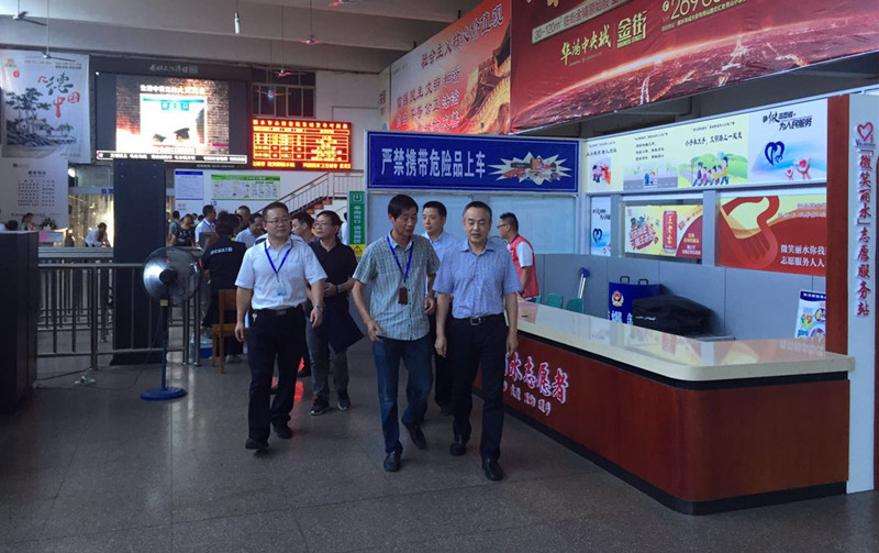 8月16日下午, 浙江省交通廳副廳長趙雁、市交通局副局長葉利東、市運管局副局長金昌平等領(lǐng)導(dǎo)到客運東站檢查安全生產(chǎn)工作。集團公司董事長葉茂、副總經(jīng)理何赤詮、客運東站負責人江小華陪同檢查。