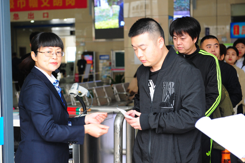“各位旅客,從上饒到重慶的班車開始檢票,請帶好您的行李物品排隊檢票”;“您好,我扶您到前面優(yōu)先檢票”……選手熱情的服務(wù),規(guī)范的操作,讓觀眾暫時忘卻了這是在行車比賽現(xiàn)場。