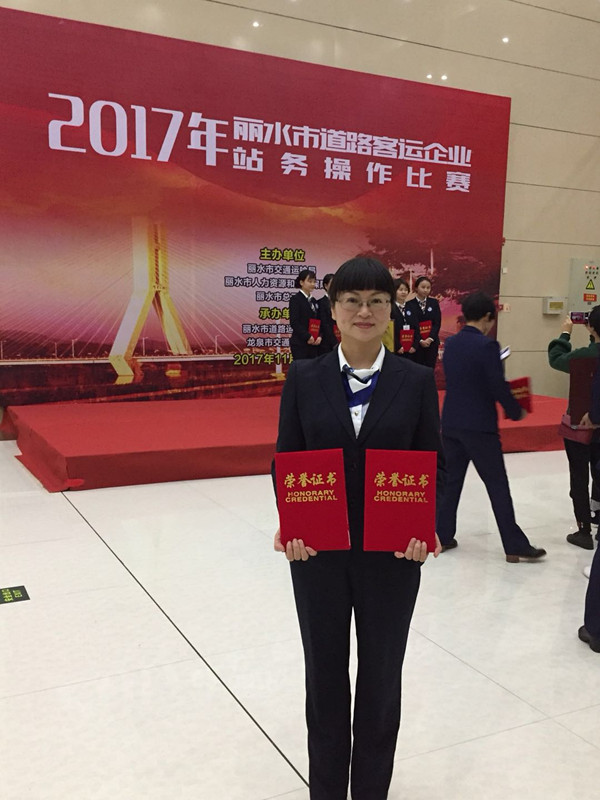 在客運(yùn)西站擔(dān)任服務(wù)組組長的10年時間里,她累計為旅客解決實際困難419件,救助困難旅客金額3095元,為旅客尋找失物價值達(dá)5萬余元,受到媒體、旅客書面表揚(yáng)55次。在她帶領(lǐng)下,西站服務(wù)班表現(xiàn)突出,先后被授予市級“青年文明號”,市“三八”紅旗先進(jìn)集體,省、市級“巾幗文明崗”,市級“工人先鋒號先進(jìn)集體”等榮譽(yù)稱號。她本人也獲得浙江省優(yōu)秀志愿者,麗水交通百名先進(jìn)工作者,麗汽集團(tuán)“優(yōu)秀員工”、“服務(wù)明星”、“感動麗汽人物”提名獎等眾多榮譽(yù)。
