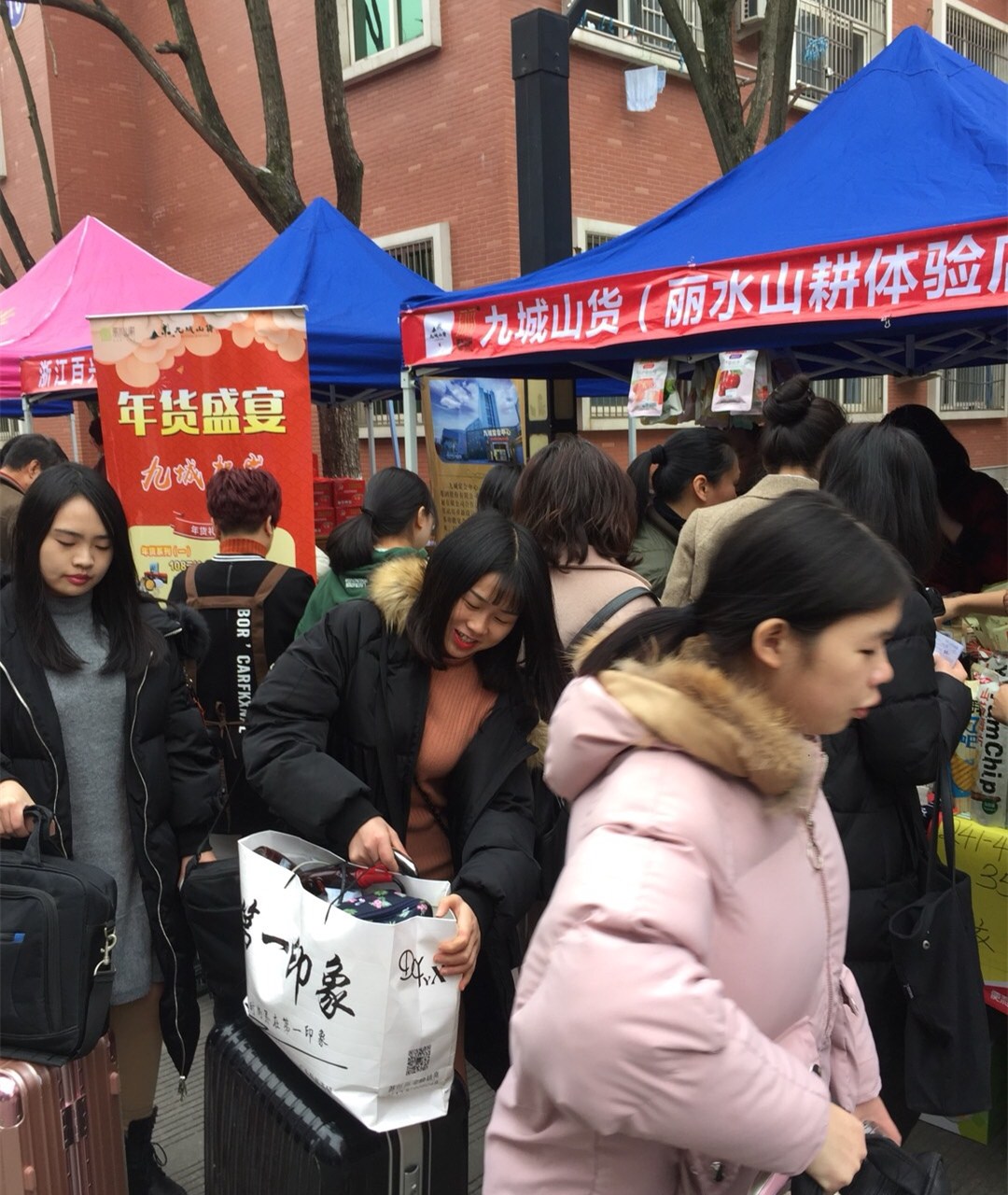 1月19日至1月21日,九城山貨入場麗水職業(yè)技術(shù)學(xué)院第一屆年貨節(jié)。本次活動共有參展商12家,主要針對麗水職業(yè)技術(shù)學(xué)院師生,為廣大師生提供年貨采購渠道。
