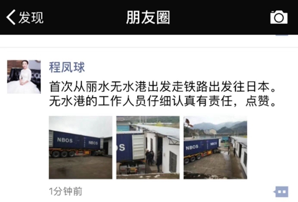 “首次從麗水無水港出發(fā)走鐵路出發(fā)往日本,無水港的工作人員仔細認真有責任,點贊?!边@是麗水春子農(nóng)業(yè)裝箱后老板發(fā)在朋友圈上的。大家都表示能得到客戶的認可和信賴是對我們工作最大的肯定,再苦再累都值得。