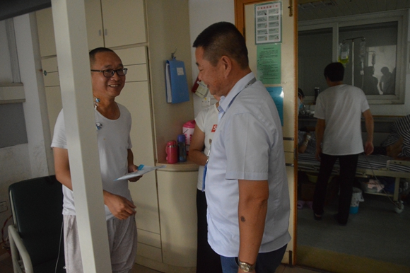 在醫(yī)院里,金健飛校長拉著梅申慶的手,詢問了他的病情和身體狀況,鼓勵他積極接受治療,早日康復(fù)回汽校繼續(xù)學(xué)車。并當(dāng)場表示麗汽汽校將減免梅申慶補(bǔ)考的所有費(fèi)用。