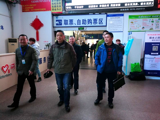 葉利東一行實(shí)地查看了東站實(shí)名售檢票、旅客安檢等崗位的工作情況,并聽取了梁巍經(jīng)理對東站春運(yùn)前準(zhǔn)備工作、客運(yùn)組織、安全管理等情況的匯報(bào)。葉利東對東站春運(yùn)前安全工作提出了五點(diǎn)合理要求:一是在思想上要高度重視;二是強(qiáng)調(diào)安全第一,組織一次全面排查和消除安全隱患,制定和完善應(yīng)急預(yù)案,確保春運(yùn)各項(xiàng)工作落到實(shí)處。三是各部門之間要相互配合,責(zé)任層層落實(shí)到人; 四是要嚴(yán)格落實(shí)車輛運(yùn)行狀態(tài)下不間斷動態(tài)監(jiān)控制度,嚴(yán)格執(zhí)行“三不進(jìn)站、六不出站”;認(rèn)真落實(shí)實(shí)名制售票和安檢制度,加強(qiáng)危險(xiǎn)品查驗(yàn),做好冰凍雨雪天氣的安全防范工作。五是要營造濃厚的春運(yùn)氣氛,確保今年春運(yùn)安全、平穩(wěn)、有序。