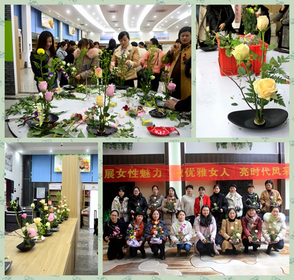 在插花分會場,麗水職業(yè)技術學院邱東萍副教授給大家講解插花藝術和技巧,特別教了時下流行的用劍山插花技巧。緊接著女工們進行插花實踐操作,分組進行插花比賽,只見女工們使出渾身解數(shù),在美麗的鮮花面前,個個都心靈手巧,她們有用劍山、有用花泥插花,很快一盆盆靚麗的鮮花就得以呈現(xiàn)。邱東萍教授和助手們選出好的作品給大家一一作了點評。