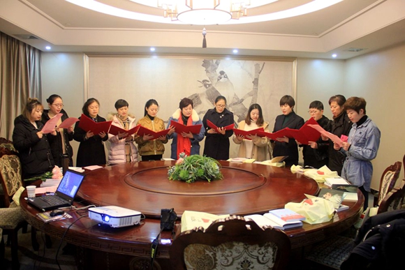 在閱讀分會場,只見女工們圍坐在一起,開啟一場閱讀的盛宴?!罢阄髂细锩瘛庇懒鱾?,閱讀者們首先向革命先輩們致敬,由工會主席呂麗君帶領大家一起朗讀了《弘揚“浙西南革命精神” 聚焦聚力“麗水之干”》。緊接著以擊鼓傳花的形式,鼓?;湔l家,由誰進行朗讀。朗讀者們朗讀中有婉轉(zhuǎn)、有昂揚,個個聲情并茂。朗讀中,集團公司黨委書記、董事長葉茂、常務副經(jīng)理總何赤詮、副總經(jīng)理廖翊堯也加入了朗讀行列。根據(jù)個人表現(xiàn),評選出了“誦讀女王”。