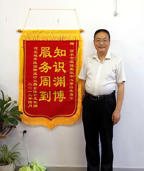 4月24日,一份來自河北的快遞悄悄地抵達(dá)了麗水市旅游集散中心,打開一看竟是一面送給集散中心導(dǎo)游朱勇華的錦旗,上面赫然寫著“知識(shí)淵博 服務(wù)周到”。
