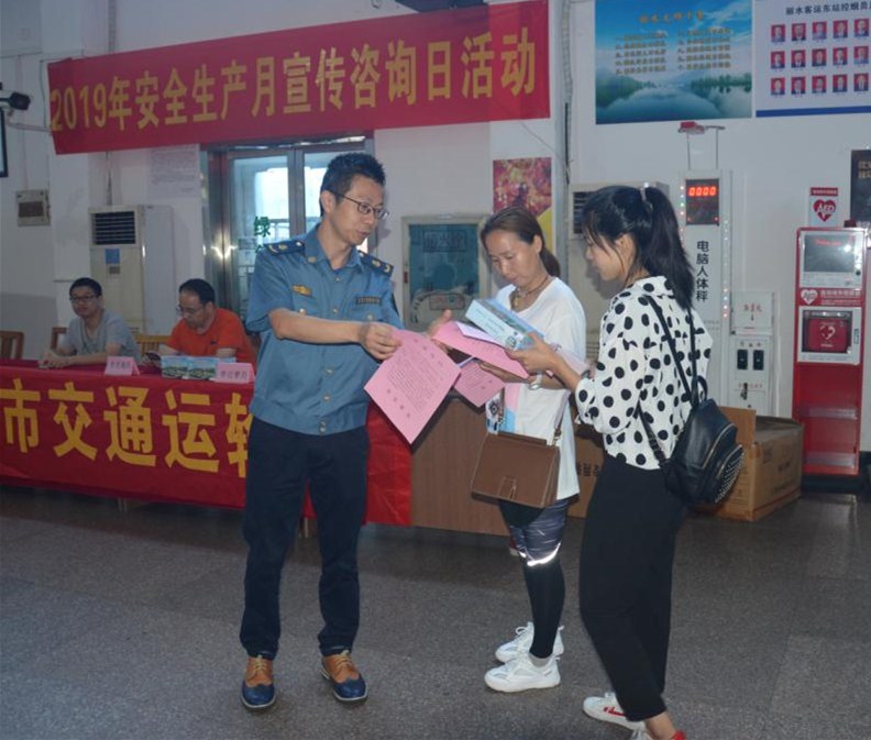 “您好,請不要攜帶易燃易爆物品上車”“ 請不要乘坐無牌無證的黑車” “這是平安出行宣傳單,您可以帶一份回去看看”……6月13日,市交通運輸局、市道路運輸管理局、市港航管理局的宣傳人員走進客運東站候車廳,圍繞“防風險、除隱患、遏事故”活動主題,開展安全生產月宣傳活動,為廣大乘客送去“平安出行 安全乘車”宣傳單。
