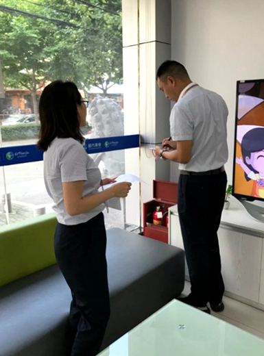 根據(jù)集團(tuán)公司2019年“安全生產(chǎn)月”活動的要求,6月24日,旅游集散中心安全生產(chǎn)領(lǐng)導(dǎo)小組對集散中心辦公場所、滅火器、電源電線、旅游應(yīng)急救護(hù)包、旅游團(tuán)隊保險等開展全面檢查,安全生產(chǎn)領(lǐng)導(dǎo)小組就個別辦公室電線不夠整齊提出整改意見。
