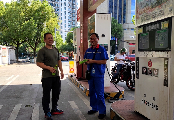 在黃泥山加油站,集團(tuán)公司黨委書(shū)記、董事長(zhǎng)葉茂將冰鎮(zhèn)綠茶送到加油工手中,感謝他們高溫下的堅(jiān)守,并關(guān)切地交待他們要注意高溫期間的防暑事項(xiàng)。在駕培訓(xùn)練場(chǎng)地、東站客運(yùn)站場(chǎng)等,集團(tuán)公司副總經(jīng)理林周穎、總經(jīng)理助理葉劍飛將一份份降暑飲品送到奮斗在崗位上的員工手中,并向他們致以親切的問(wèn)候。讓員工們充分感受到了炎炎夏日里的“清涼”,感受到了集團(tuán)公司領(lǐng)導(dǎo)的深切關(guān)愛(ài)和麗汽大家庭的溫暖。