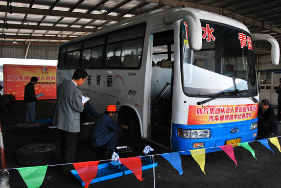 11月13日上午9點(diǎn)整,汽車維修技術(shù)比賽在快客分公司修理車間舉行,快客分公司修理車間和客長(zhǎng)運(yùn)分公司修理車間各派出4名選手,選手根據(jù)抽簽,完成前橋、后橋作業(yè)??炜头止纠罱úā⒖烷L(zhǎng)運(yùn)分公司武賢強(qiáng)、快客分公司管巧全分獲前三名。