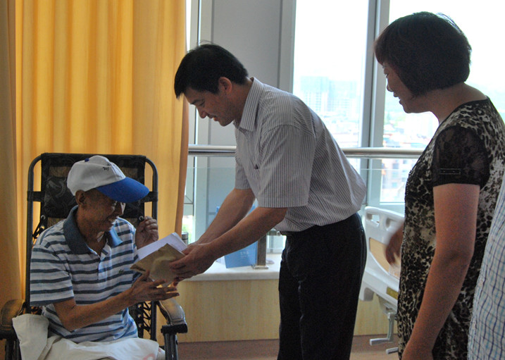 7月25日集團(tuán)公司黨委副書記、副總經(jīng)理薛和有、工會(huì)主席呂麗君專程前往醫(yī)院看望慰問了張紅太,并帶去了全公司738位員工為其捐贈(zèng)的愛心款28060元。