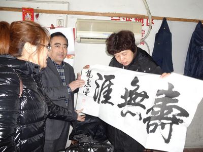 終于,神色焦急的楊先生進(jìn)入了宣主任的視線,她主動(dòng)上前詢問。一聽到有人撿到包,楊先生心情很激動(dòng),趕緊跟著宣主任到行包受理室查問。最后經(jīng)過核對(duì)確認(rèn),小田撿到的包正是他丟失的;經(jīng)清點(diǎn),包內(nèi)物品一件不少。楊先生說,他是代表山東泰山文化藝術(shù)研究院來麗水聯(lián)系中國(guó)藝術(shù)文化交流的;筆記本電腦里全是文化交流的資料,對(duì)他來說非常重要,他非常感動(dòng),非要重重酬謝小田和宣主任不可。當(dāng)楊先生聽到宣主任說,東站的工作人員拾物都會(huì)上交歸還時(shí),就對(duì)東站的領(lǐng)導(dǎo)給予員工的教育培養(yǎng)深表欽佩。為表示感謝,楊先生堅(jiān)持要贈(zèng)送給小田一幅他的墨寶“壽無涯”,喻示著好人一生平安,好人長(zhǎng)壽無疆。