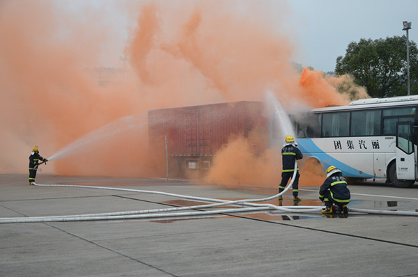 本次演練分兩個科目,分別是科目一汽車客運(yùn)站恐襲事件應(yīng)急處置演練,模擬在一名乘客過安檢時被發(fā)現(xiàn)攜帶管制刀具,安檢人員開包檢查過程中乘客拔刀行兇,車站工作人員按照預(yù)案要求,在各部門協(xié)作下制服行兇乘客保持站場正常運(yùn)行的場景。和科目二交通事故應(yīng)急處置演練,模擬在330國道風(fēng)化地段丁字路口兩車碰撞后起火燃燒,在各部門有效配合下合理處置、及時接駁乘客的場景。