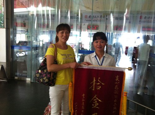 7月20日上午,客運(yùn)西站值班室迎來一位特殊的客人。她執(zhí)意要找到客運(yùn)西站行車員胡堅芬,將一面寫著“拾金不昧”的錦旗和一個水果籃交到胡堅芬手中,并再三表達(dá)了對胡堅芬的謝意。