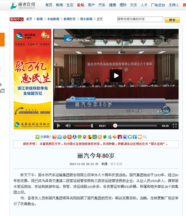 11月18日麗水信息港專題《麗汽集團(tuán)80年》