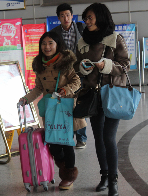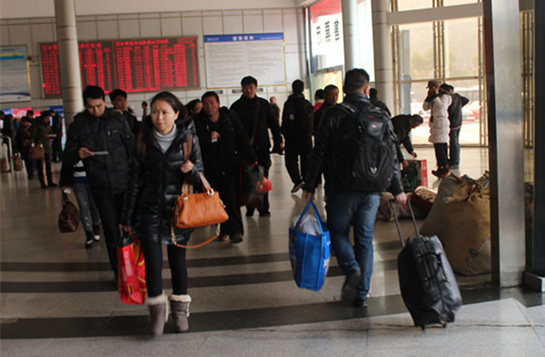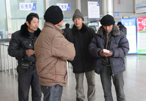 早上8:30,老吳和他的工友們早早的收拾好行李,到西站買好下午1:25去泰順的車票,這會兒拿到票,哥兒幾個才安心的準備去吃早飯。他們按捺不住心中的喜悅說:“在外辛苦了一年能在春運第一天順利買到車票回家過年,很開心!”