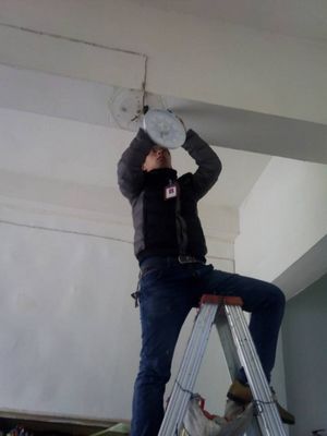 工作人員正在更換照明設(shè)施