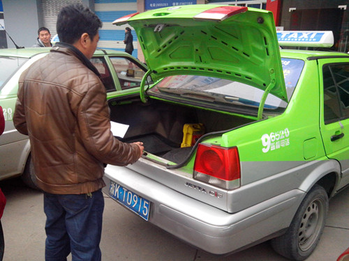 長運(yùn)出租車分公司的管理員正在進(jìn)行車輛技術(shù)狀況檢查