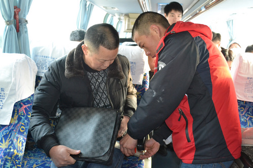 “加班到金華的駕駛員已經(jīng)報(bào)班!”1月17日13:00分,駕駛員曾國(guó)偉準(zhǔn)時(shí)來(lái)到車(chē)隊(duì)簽到,半個(gè)小時(shí)前,曾國(guó)偉還在親戚家喝喜酒,接到13:30要開(kāi)加班車(chē)的任務(wù),他沒(méi)來(lái)的及等吃完飯就趕到了單位。同事問(wèn)起來(lái)時(shí),他幽默地說(shuō):“春運(yùn)了,隨時(shí)都有加班任務(wù),哪敢隨意喝酒啊,這可是系著一車(chē)旅客的安全?!?br />說(shuō)話的工夫,他來(lái)到班車(chē)上試了試燈光,檢查了機(jī)油和水位,試發(fā)一下發(fā)動(dòng)機(jī),隨后又敲了敲輪胎,各項(xiàng)正常。開(kāi)車(chē)前,他拿起了茶杯,卻只是稍稍抿了一小口,出車(chē)前,不敢多喝水,生怕影響行車(chē),這也是他多年的習(xí)慣。隨著一聲哨響,曾國(guó)偉駕駛的班車(chē)也緩緩地駛出了客運(yùn)西站。