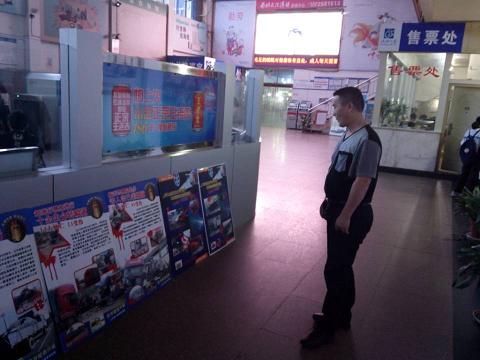 在開展安全生產(chǎn)宣傳教育活動(dòng)期間,客運(yùn)東站以黑板報(bào),宣傳欄等形式進(jìn)行安全宣傳,強(qiáng)化員工安全意識(shí),提高安全責(zé)任素養(yǎng)。在進(jìn)入客運(yùn)東站的走廊通道上可以看到擺放著的各種安全宣傳牌,以供司乘人員學(xué)習(xí),提高安全意識(shí)。在安全工作上提高安保級(jí)別,加大對(duì)旅客行包的檢查力度,保衛(wèi)稽查科嚴(yán)格按照危險(xiǎn)物品檢查的安全規(guī)定制度操作,不論大小行李,只要是隨身物品進(jìn)入東站,一定要經(jīng)過安檢人員檢查方可進(jìn)站乘車,把安全隱患消滅在萌芽中。