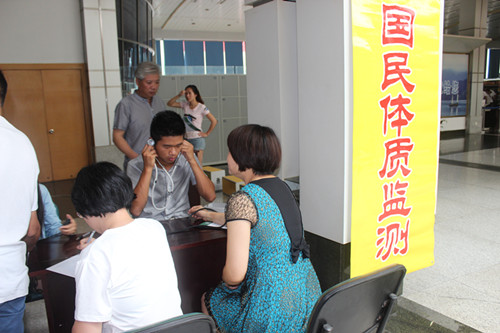 7月3日上午,市國民體質(zhì)監(jiān)測中心工作人員走進客運西站候車室,為車站的工作人員、司乘人員和過往的旅客開展國民體質(zhì)監(jiān)測活動,通過這樣的方式采集全市各類人群的體質(zhì)監(jiān)測數(shù)據(jù),為引導(dǎo)群眾科學(xué)開展全民健身活動提供科學(xué)數(shù)據(jù)。