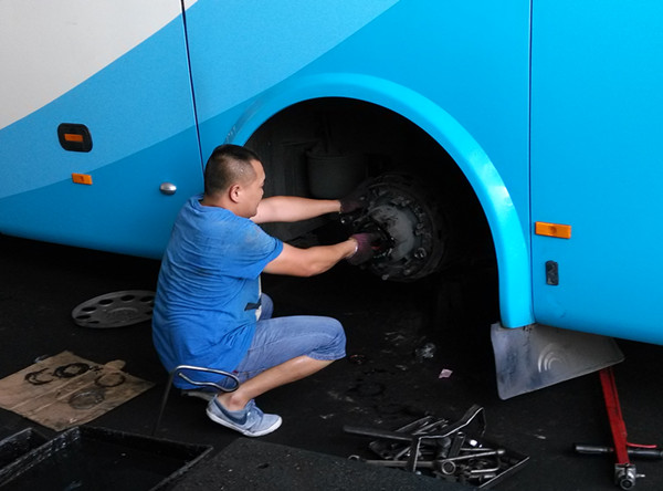 走進(jìn)車輛維修車間,一股熱浪迎面撲來,耳邊傳來輪胎拆裝機(jī)的轟鳴聲,眼前我們可以看見手拿各種工具的維修工人們忙碌的身影。他們有的在拆輪胎,有的在焊接,有的在拆裝螺帽,有的在清洗設(shè)備…灼眼的閃光,飛濺的火星,淺藍(lán)的煙霧,稍微有點(diǎn)嗆鼻的氣味,或蹲或站,左手緊握著防護(hù)罩,右手使著電焊槍,豆大的汗水順著臉頰流下來。廣大一線員工不畏高溫一如既往地堅(jiān)守在各自崗位上,為企業(yè)的生產(chǎn)經(jīng)營(yíng)付出了艱辛的汗水,為事業(yè)貢獻(xiàn)了力量。師傅們,你們真的辛苦了!