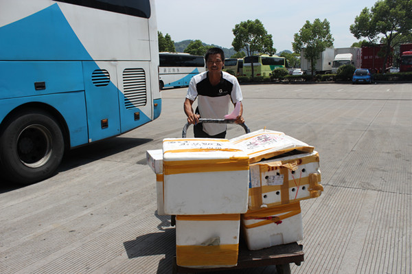 要論炎夏最辛苦的崗位,很多人自然會(huì)想到行李房的裝卸工。行包裝卸工冒著熱浪辛勤作業(yè),準(zhǔn)時(shí)地收發(fā)一批批貨物。行包房收發(fā)的貨物很多都是大件貨物,輕的幾十斤,重的二、三百斤,一批貨物裝卸下來,裝卸工的衣服都能擰出水來。37度的高溫,平常人在太陽底下站上幾分鐘都受不了,行包裝卸工卻要負(fù)重往返在車輛和行李房之間,絕大部分時(shí)間都是在露天發(fā)車區(qū)作業(yè),其辛苦可想而知。雖然被熱浪蒸得暈暈乎乎的,他們卻一點(diǎn)也不敢大意。這么熱的天氣,海鮮水產(chǎn)、鮮活貨物很容易腐敗變質(zhì),一個(gè)不小心錯(cuò)發(fā)誤發(fā)帶給客戶的可能不僅是時(shí)間精力的損耗,更會(huì)造成客戶直接的經(jīng)濟(jì)損失。所以即使再熱再辛苦,清點(diǎn)、裝卸、核對(duì),整個(gè)流程他們絲毫沒有一點(diǎn)含糊!