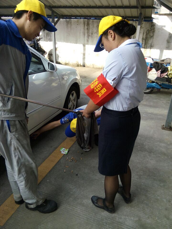 參加活動的小組成員們頭戴“麗汽”小黃帽,手拿撿煙頭的操作桿,在包干區(qū)內(nèi)認(rèn)真的巡視著,并對發(fā)現(xiàn)的垃圾及煙頭及時清理,細(xì)心的“小黃帽”周堯斌在一輛停置著的車輛下發(fā)現(xiàn)了許多煙頭,就馬上蹲下去,車底下的煙頭全撿了出來,在清理完后,大家臉上露出了開心的笑容。經(jīng)過大家細(xì)心的保潔活動,我們包干區(qū)已經(jīng)非常干凈,路面一個煙頭也不見了,包干區(qū)內(nèi)的店家也自動的把門前放置的物品清理到店內(nèi),保證了人行道的暢通。