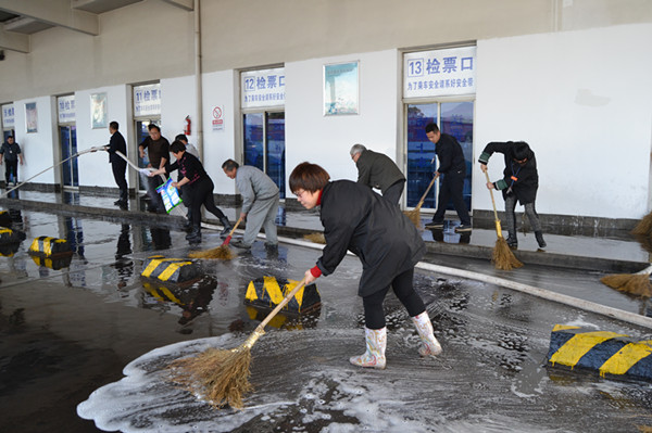 在創(chuàng)建國家衛(wèi)生城市公示階段的關(guān)鍵時刻,東站繼續(xù)發(fā)揚團結(jié)奮戰(zhàn)的精神,眾志成城進一步鞏固創(chuàng)衛(wèi)成果,以嶄新的面貌迎接春運,為旅客營造一個整潔衛(wèi)生的乘車環(huán)境。