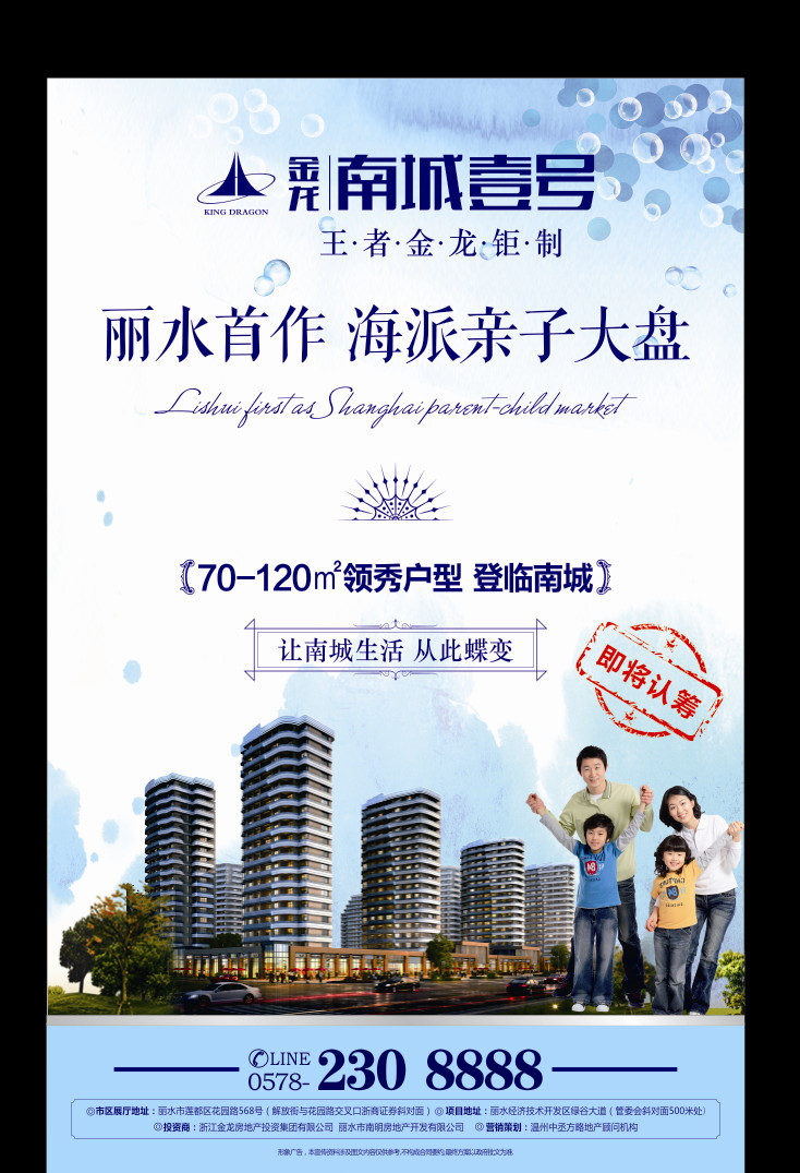 麗水首作海派親子大盤,金龍.南城壹號即將認籌,70-120平方米領袖戶型,配備超200米特色商業(yè)內(nèi)街、近1000米環(huán)形跑道、超800平方米藍鉆泳池和8大親子主題,讓南城生活從此蝶變。 咨詢熱線:0578-2308888 市區(qū)展廳地址:花園路568號(花園路與解放街交叉口浙商證券斜對面)