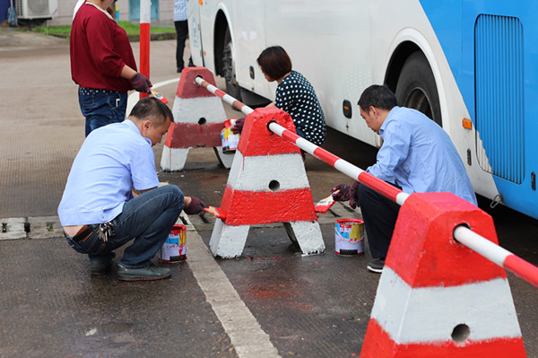 為響應(yīng)總公司“開源節(jié)流,挖潛增效”的號召,也為配合客運東站的“安全生產(chǎn)月”活動,發(fā)揚“自己動手,豐衣足食”的勞動精神,在東站黨支部委員金旭陽的倡導(dǎo)下,東站的黨員、團員、入黨積極分子及普通員工在6月5日上午早早地來到東站,進行第二波自己動手挖潛增效活動,利用自己的休息時間對東站年久褪色的隔離墩進行油漆刷新。