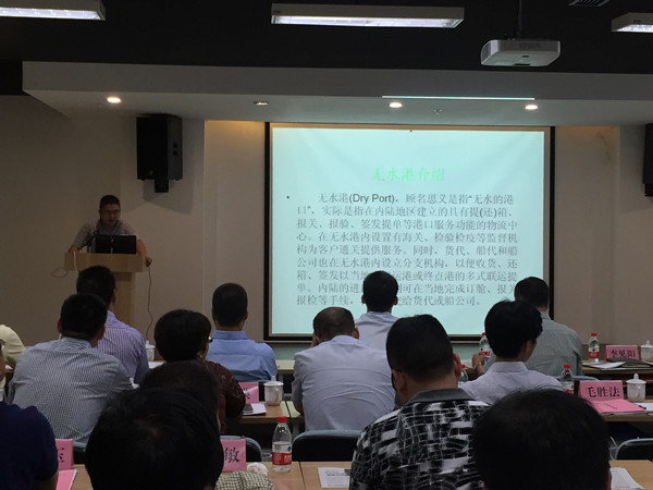 會上,陸港國際物流公司作為發(fā)言代表之一對無水港作了介紹。無水港副經理張曉軍從什么是無水港,麗水無水港具有的優(yōu)勢,無水港的定位及功能,無水港開港后給各位客戶帶來的便利及優(yōu)惠政策等向與會人員作了詳細講解。