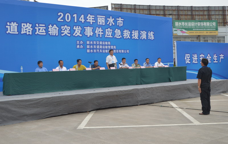 整個(gè)演練由市交通局黨組副書記、副局長(zhǎng)李根林任總指揮,市交通局副調(diào)研員葉彪、市運(yùn)管局副局長(zhǎng)金昌平任副總指揮,麗汽集團(tuán)常務(wù)副總經(jīng)理何赤詮任現(xiàn)場(chǎng)總指揮。演練共調(diào)集各類車輛近20臺(tái),80余人參與了演練。麗水市公安局副局長(zhǎng)、麗水市交警支隊(duì)支隊(duì)長(zhǎng)陳志斌,麗水市政府應(yīng)急辦主任尹耀新,麗水市消防支隊(duì)副支隊(duì)長(zhǎng)鄭志堅(jiān),麗水市安全生產(chǎn)監(jiān)督管理局應(yīng)急處處長(zhǎng)王琦,麗水高速交警支隊(duì)副支隊(duì)長(zhǎng)朱宏煒,麗汽集團(tuán)黨委書記、董事長(zhǎng)葉茂,麗汽集團(tuán)總經(jīng)理薛和有等領(lǐng)導(dǎo)和麗汽集團(tuán)相關(guān)管理人員共200余人觀摩了整個(gè)演練過程。