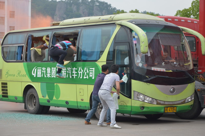 為了全面落實(shí)安全生產(chǎn)責(zé)任,檢驗(yàn)評(píng)估麗水市突發(fā)事件應(yīng)急救援預(yù)案和應(yīng)急救援體系的適應(yīng)性、有效性,最大限度地減少各類突發(fā)事件的損失和負(fù)面影響,6月10日下午,麗水市交通運(yùn)輸局聯(lián)合市道路運(yùn)輸管理局和麗汽集團(tuán)在客運(yùn)西站組織開展了突發(fā)事件應(yīng)急救援演練。此次應(yīng)急救援演練共分2個(gè)科目,分別為:科目一交通事故(客車碰撞后起火燃燒)應(yīng)急處置和科目二“三防”應(yīng)急救援車輛調(diào)集演練。文首即為突發(fā)事件應(yīng)急救援演練中交通事故應(yīng)急處置中的一個(gè)場(chǎng)景,此次演練的另一個(gè)科目模擬市交通運(yùn)輸局緊急調(diào)用麗汽集團(tuán)應(yīng)急搶險(xiǎn)運(yùn)力展開。演練中,麗汽集團(tuán)在接到市交通運(yùn)輸局應(yīng)急搶險(xiǎn)指令后,迅速啟動(dòng)了應(yīng)急預(yù)案,并立即調(diào)派各單位應(yīng)急搶險(xiǎn)車輛在規(guī)定時(shí)間內(nèi)到達(dá)指定區(qū)域待命。