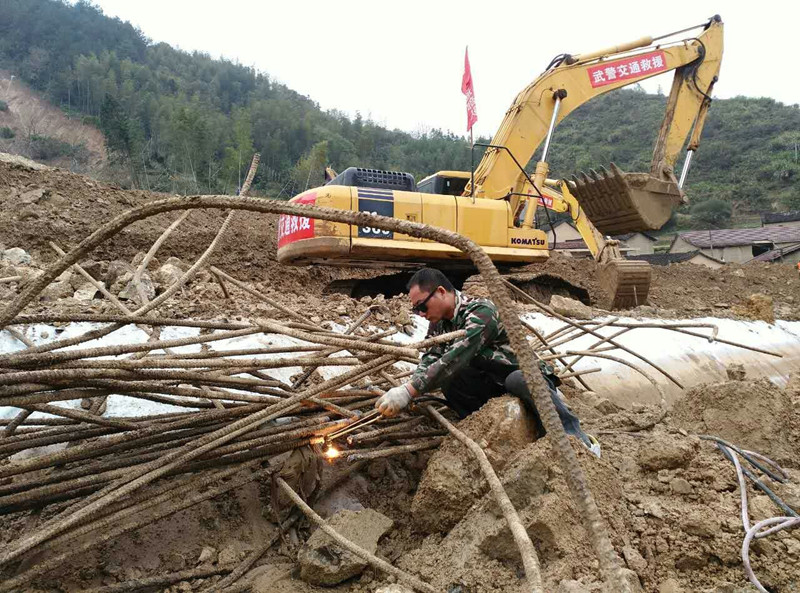 修理工陳健和葉仕林組裝好氣割設(shè)備后,將鋼筋切隔分段,金旭陽和吳天軍兩人則和現(xiàn)場(chǎng)的消防、武警戰(zhàn)士一起將切割好的鋼筋搬離現(xiàn)場(chǎng)。在搬鋼筋的過程中,他們的腳陷入了泥潭,手被鋼筋磨出了水泡,汗水濕透了衣服,但誰也沒有吱一聲。經(jīng)過眾人馬不停蹄的3個(gè)多小時(shí)的努力,被掩埋的二十多噸鋼筋全部按要求搬離。
