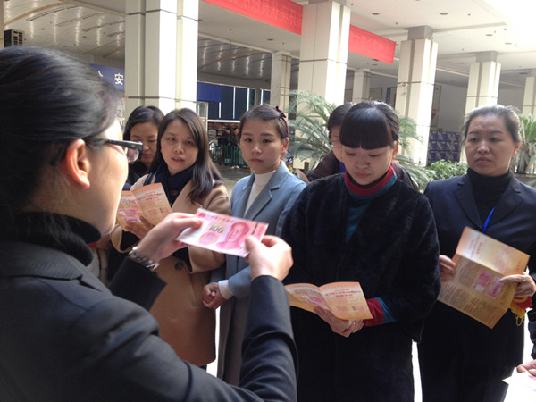 培訓(xùn)在業(yè)務(wù)站員工熱情的學(xué)習(xí)氛圍下有序展開。培訓(xùn)期間,泰隆銀行的工作人員專業(yè)的回答了業(yè)務(wù)站員工提出的問題,并以言傳身教的方式手把手詳細(xì)講解了如何識別新版人民幣的各個(gè)關(guān)鍵要素。
