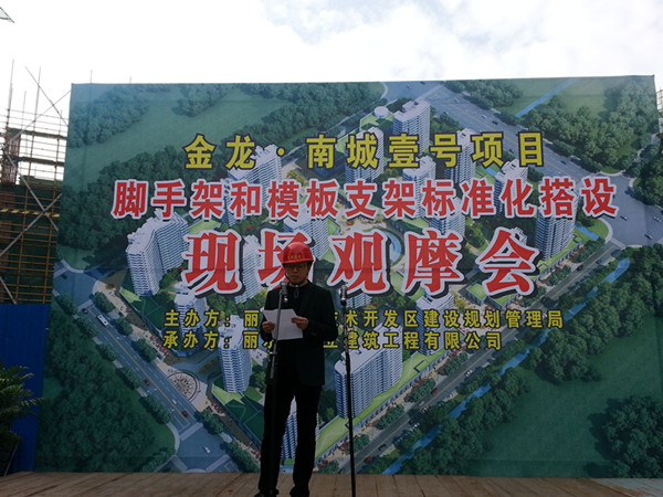 12月3日,由麗水經(jīng)濟(jì)技術(shù)開發(fā)區(qū)建設(shè)規(guī)劃管理局主辦的建筑施工現(xiàn)場觀摩會(huì)在金龍?南城壹號(hào)項(xiàng)目工地現(xiàn)場召開。市建設(shè)局領(lǐng)導(dǎo)、開發(fā)區(qū)建規(guī)局領(lǐng)導(dǎo)、開發(fā)區(qū)在建和即將開建項(xiàng)目的建設(shè)單位、監(jiān)理單位、施工單位共100余名代表走進(jìn)項(xiàng)目現(xiàn)場,全方位觀摩了南城壹號(hào)項(xiàng)目的安全標(biāo)準(zhǔn)化工地、項(xiàng)目精細(xì)化管理、人性化服務(wù)、特別是對腳手架和模板支架標(biāo)準(zhǔn)化搭設(shè)等內(nèi)容。
