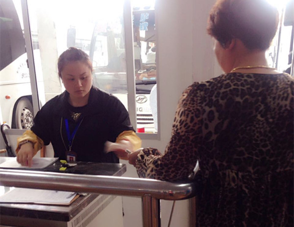 等到20:33分,汽車終于進(jìn)站。洪麗立即走到檢票臺,熟練地開始拿票、掃描、核對。檢票完,她發(fā)現(xiàn)還有一名旅客尚未上車。