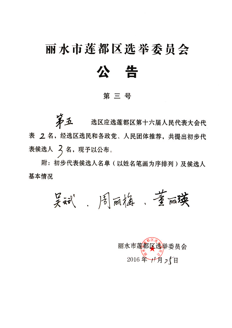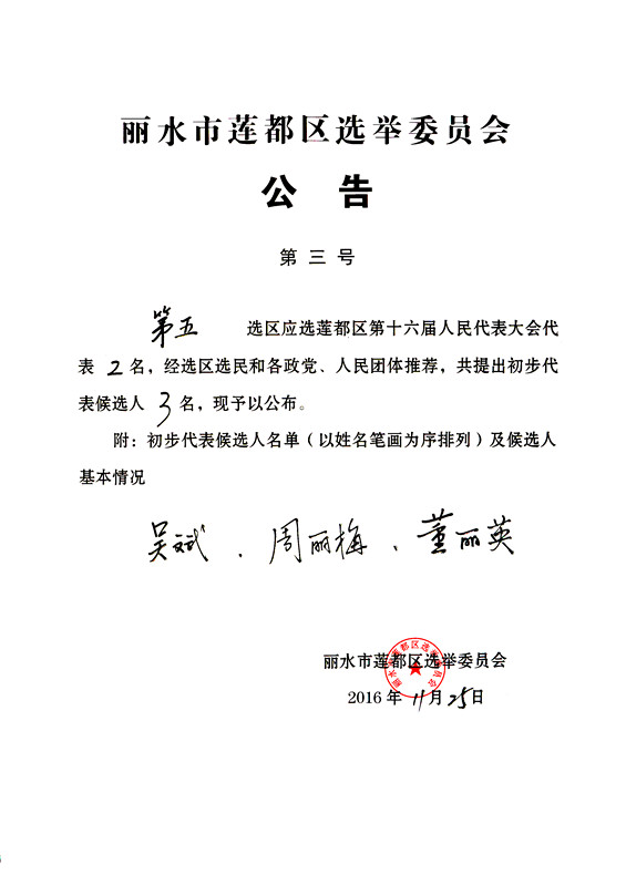 麗水市蓮都區(qū)選舉委員會(huì)公告( 第二號(hào) )
