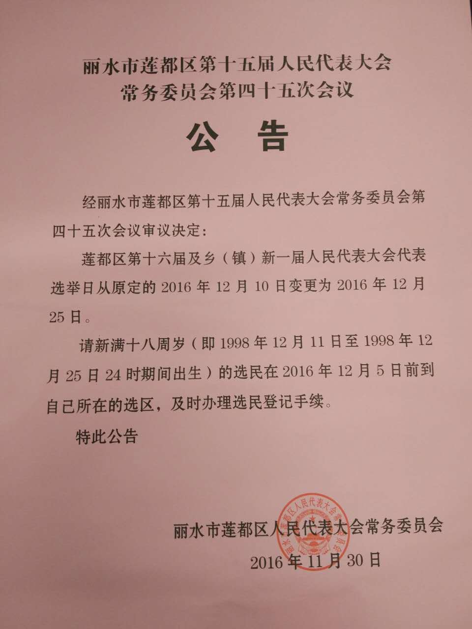 麗水市蓮都區(qū)選舉委員會(huì)公告(第三號(hào))