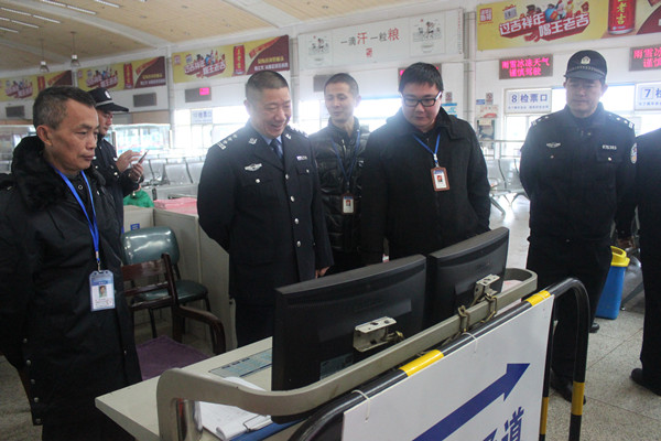 尤政委來到候車室內(nèi),認(rèn)真檢查了危險(xiǎn)品檢查工作,詳細(xì)了解西站目前的班線、客流、行包托運(yùn)等情況,他指出一定要把安全生產(chǎn)放在首要位置,確保平安春運(yùn)。