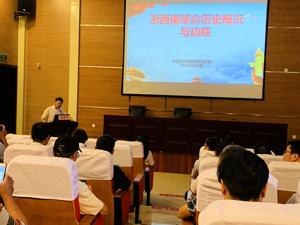 黨課由中共麗水市委黨史研究室的邱理平老師授課,他從唐公憲到遂昌創(chuàng)建中共組織開始,到第一個浙西南黨支部遂昌黨支部的成立,浙西南的革命部隊逐漸壯大,再到土地革命,在麗水的這片土地上,擁有了黨、政、軍、群團四大力量,可謂掀起了局部革命的小高潮,但還是迎來國民黨圍剿,麻植、蔡鴻猷、季步高等革命先驅(qū)相繼遇害,浙西南革命事業(yè)受挫。星星之火可以燎原,經(jīng)過不懈努力,遂昌縣工農(nóng)革命軍成立,是中國共產(chǎn)黨在浙西南建立的第一支革命武裝。革命的力量不斷壯大,浙西南作為大后方,為紅軍的戰(zhàn)略大轉移,起到了非常重要的作用。